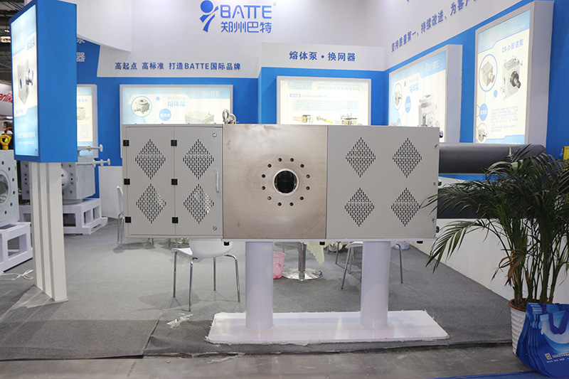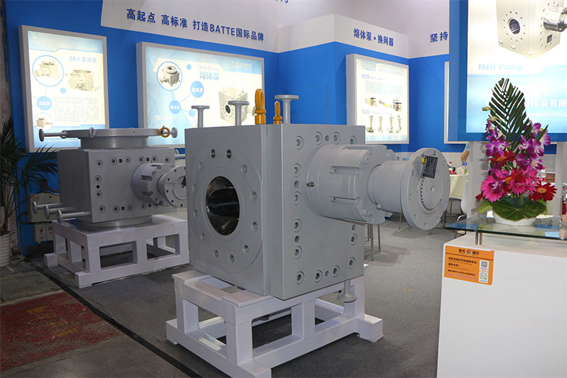 鄭州巴特此次主要展出的是大規格聚合物熔體出料泵,排量為12000CC,它適用于高真空條件下,高溫高粘度物料的聚合反應高壓出料。還有D系列的管道增壓泵,適用于高輸出壓力的高溫高粘度聚合物熔體輸送、增壓,如樹脂、化纖等行業,般安裝于熔體管道中,用作增壓泵。